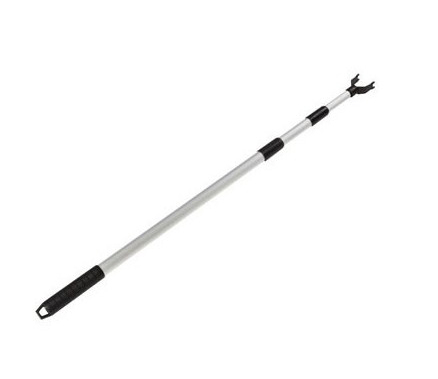 En hjälpande hand och ett måste i varje klädaffär. Justerbar reacher i aluminium med svarta plasthantag samt dubbelhake upptill